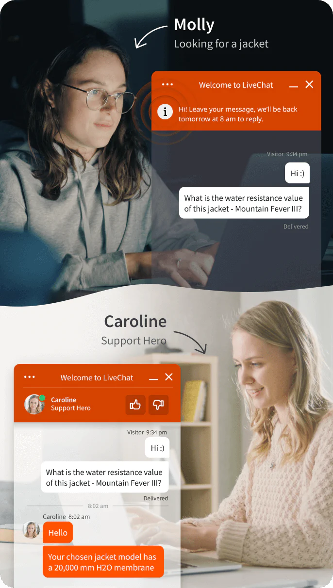If a customer leaves halfway through the conversation, they’ll still get your messages, and you won’t need to start a chat all over again once they’re back.