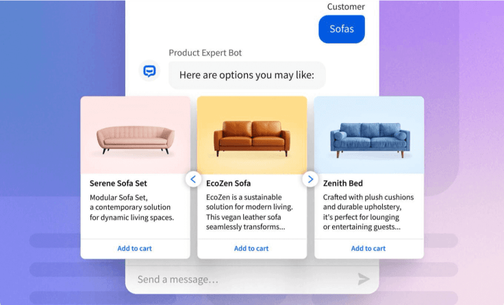 | Proactive messaging | Automatically triggers messages based on visitor behavior (for instance, lingering on a page). |